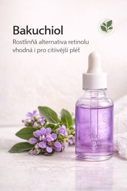 - Bakuchiol – jemná rostlinná alternativa retinolu, bojuje proti známkám stárnutí bez podráždění